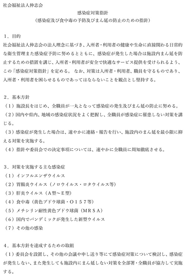 以下に社会福祉法⼈伸志会 感染症対策委員会指針を掲載いたします。